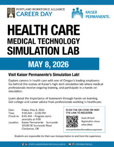 Explore careers in health care with one of Oregon’s leading employers. Go behind-the-scenes at Kaiser’s high-tech simulation lab where medical professionals receive ongoing training, and participate in a hands-on simulation. Learn about the importance of teamwork through hands-on learning. Get college-and-career advice from professionals working in healthcare. IN PERSON at KP.