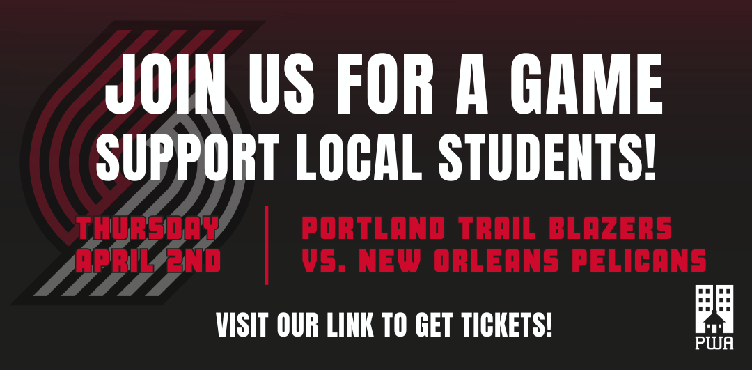 PWA is partnering with the Blazers a second time on April 2, 2026 and you can support by being a fan! Buy a ticket to the Trail Blazers vs. Pelicans game, and a portion of every ticket purchased through the link will directly support PWA’s work.